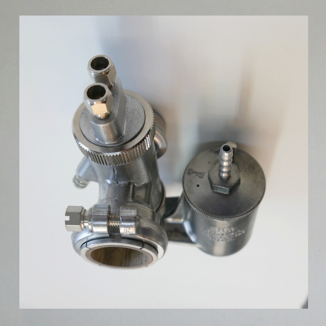 Auf Wunsch kann der Vergaser auch mit schwarz cadmierten Teilen versehen werden, was einen geringen Mehrpreis bedeutet.