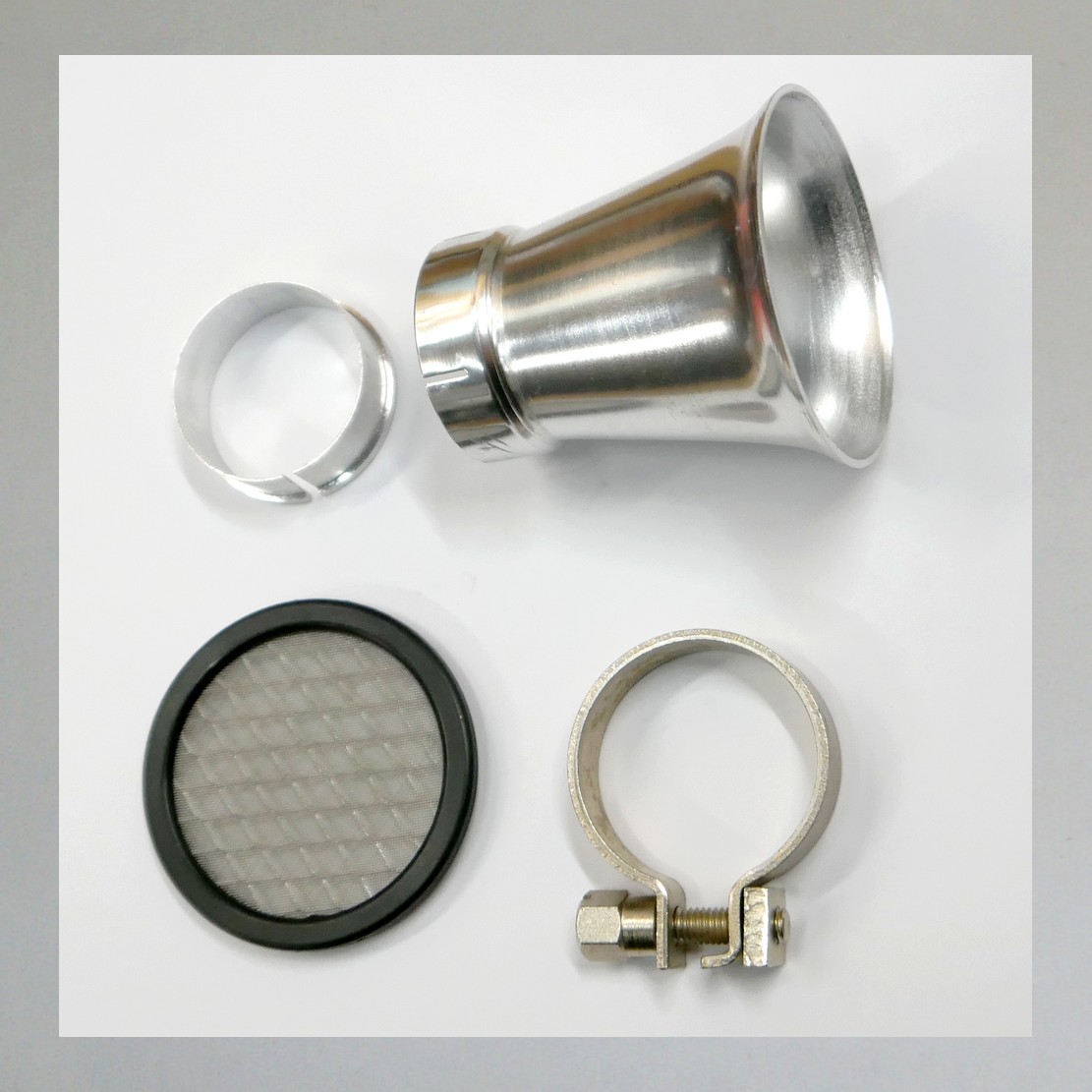Wir statten diese Trichter mit einem entsprechenden Distanzring und einer richtigen Schelle aus, so dass diese für