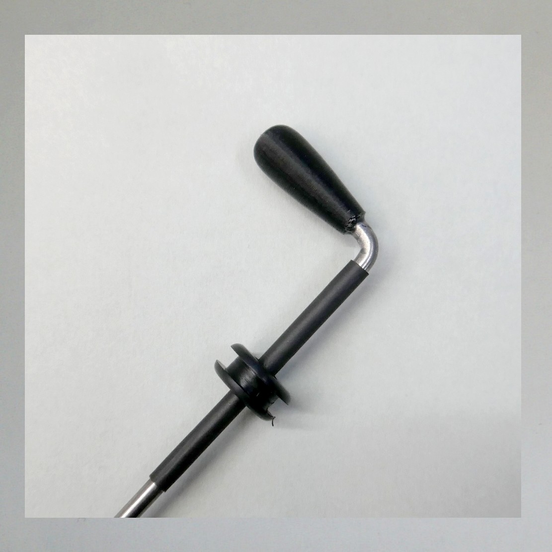 Die Durchführung ist innen etwas zu gross, daher hat die Stange vorne etwas Schrumpfschlauch.