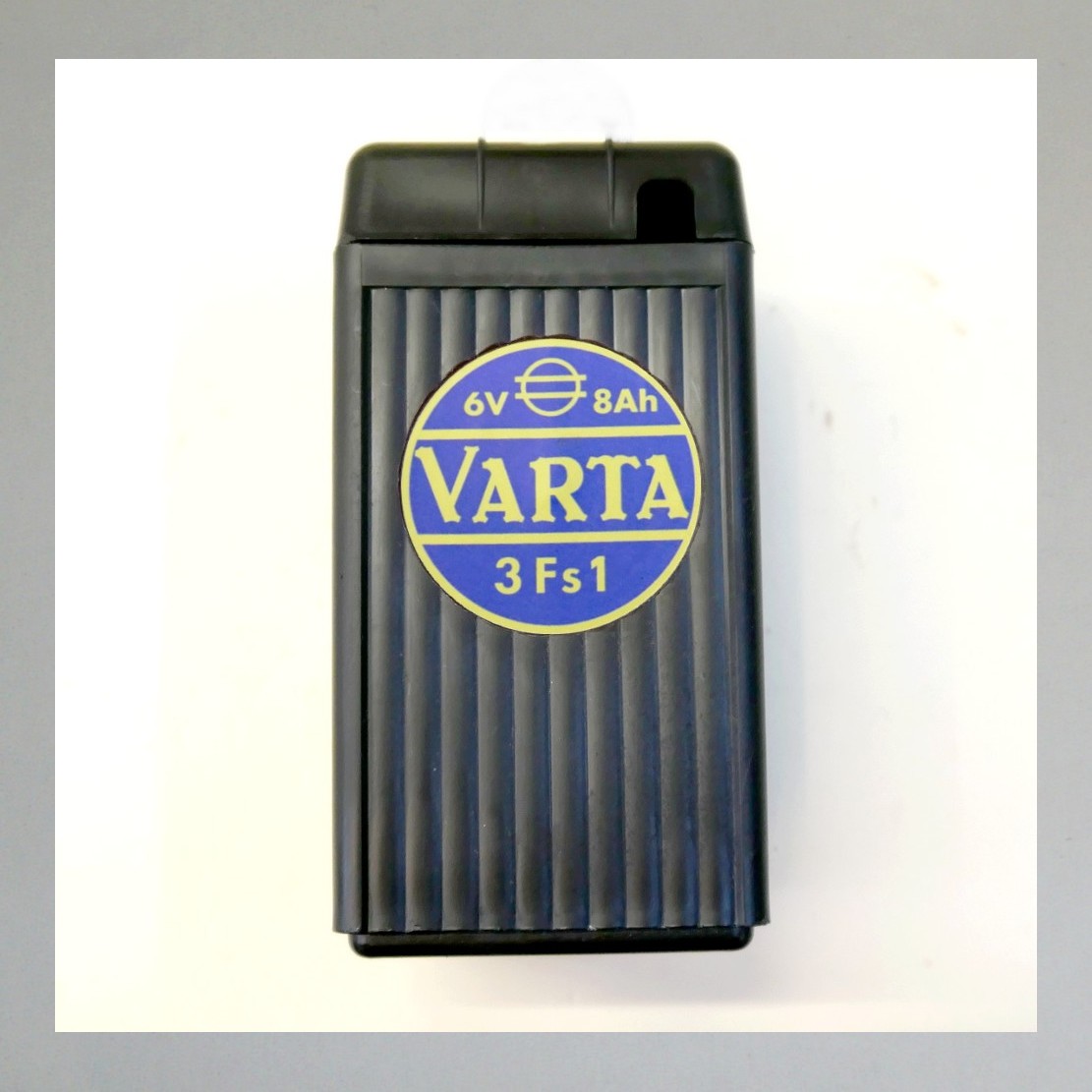 Mit Aufkleber "Varta" auf einer der schmaleren Seiten.
