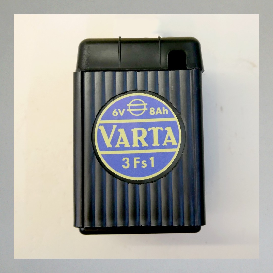 Mit Aufkleber "Varta" auf einer der schmaleren Seiten.
