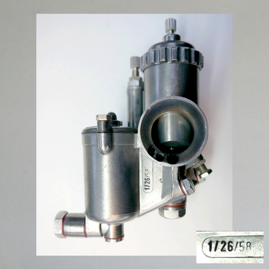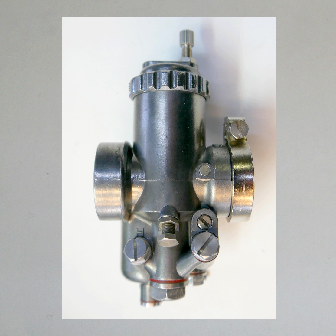 Diesen Vergaser gab es auch mit einem ca 90 Grad Rohrbogen für den Gaszug.