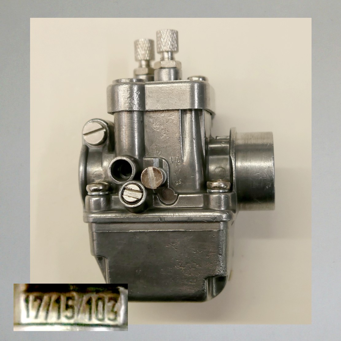 Früher haben wir die Vergaser poliert, wasauf manchen Artikelbildern noch zu sehen ist. Dies bieten wir nur noch auf Wunsch an.