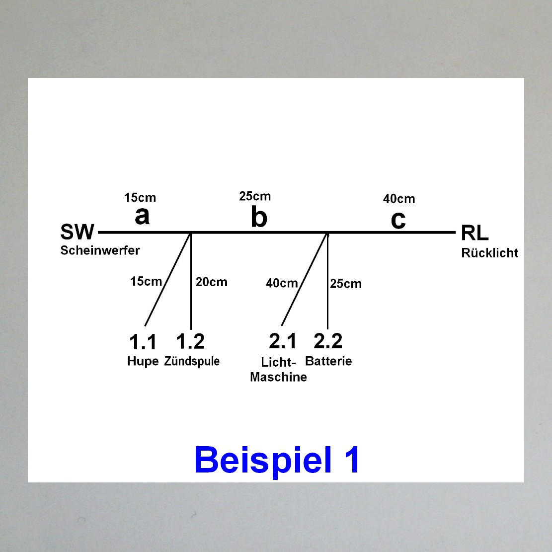 Längenangabe Kabelschlauch (Bougier) d: ...cm (entfällt wenn der Kabelbaum nur zweimal abzweigt)