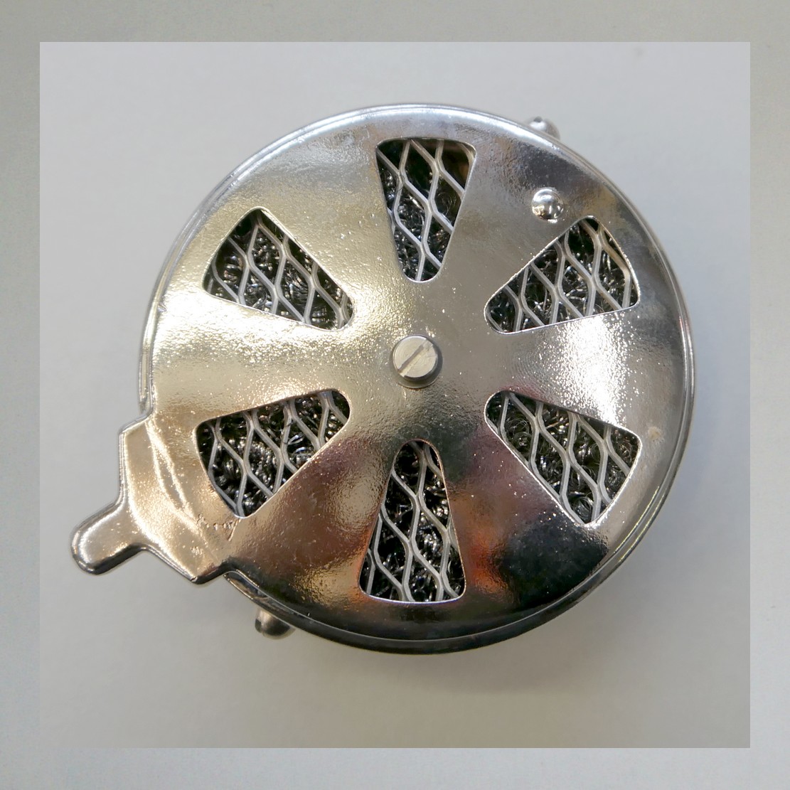 So kann der Filter wie eine Blechdose verschlossen und durch seitliche Schrauben gesichert werden.