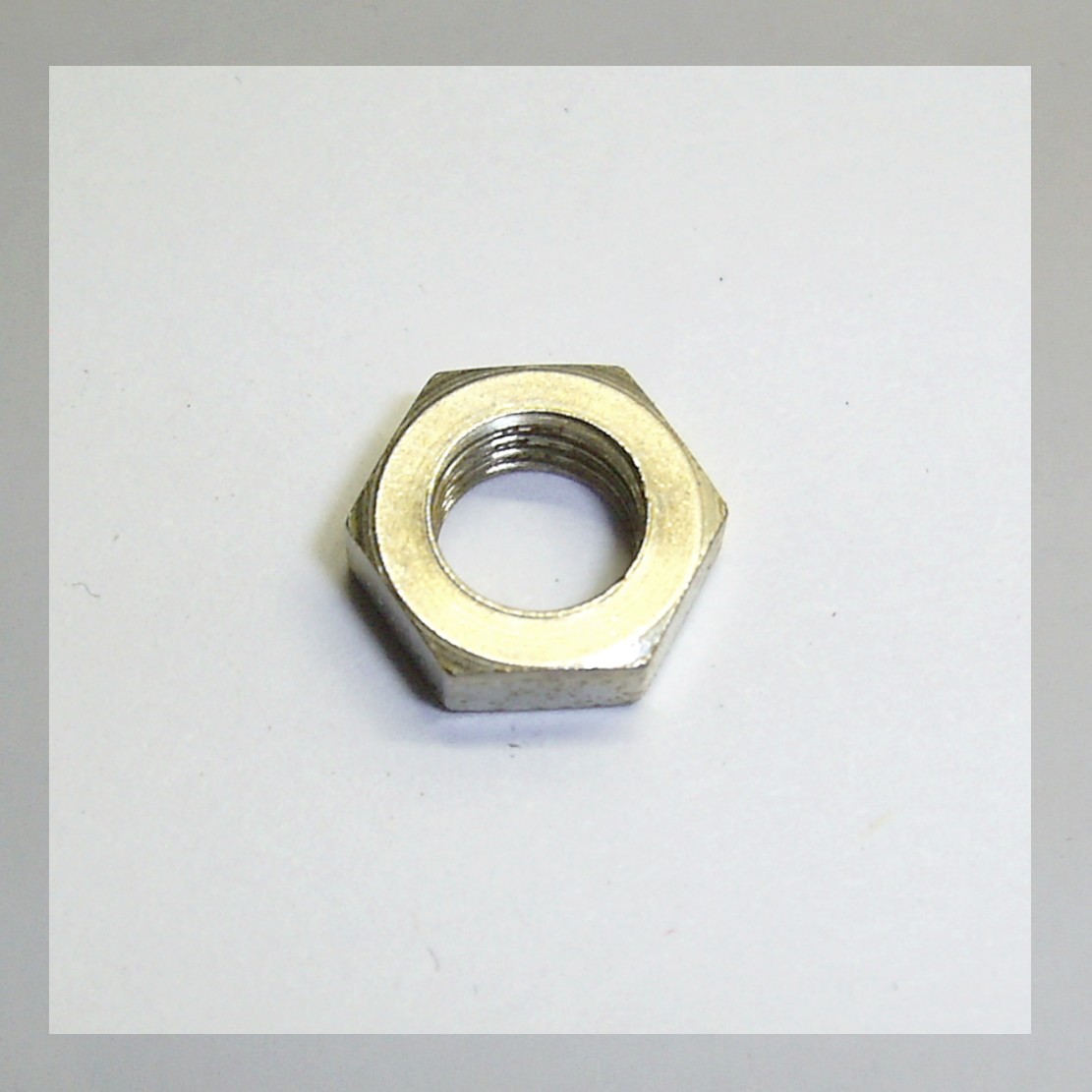 Mutter für die Zugstell-Schraube M5 für den Rohrbogen Gewinde M5. Vernickelt. Vewendung bei Vergasern für Hilfsmotoren, Mofas, Mopeds.