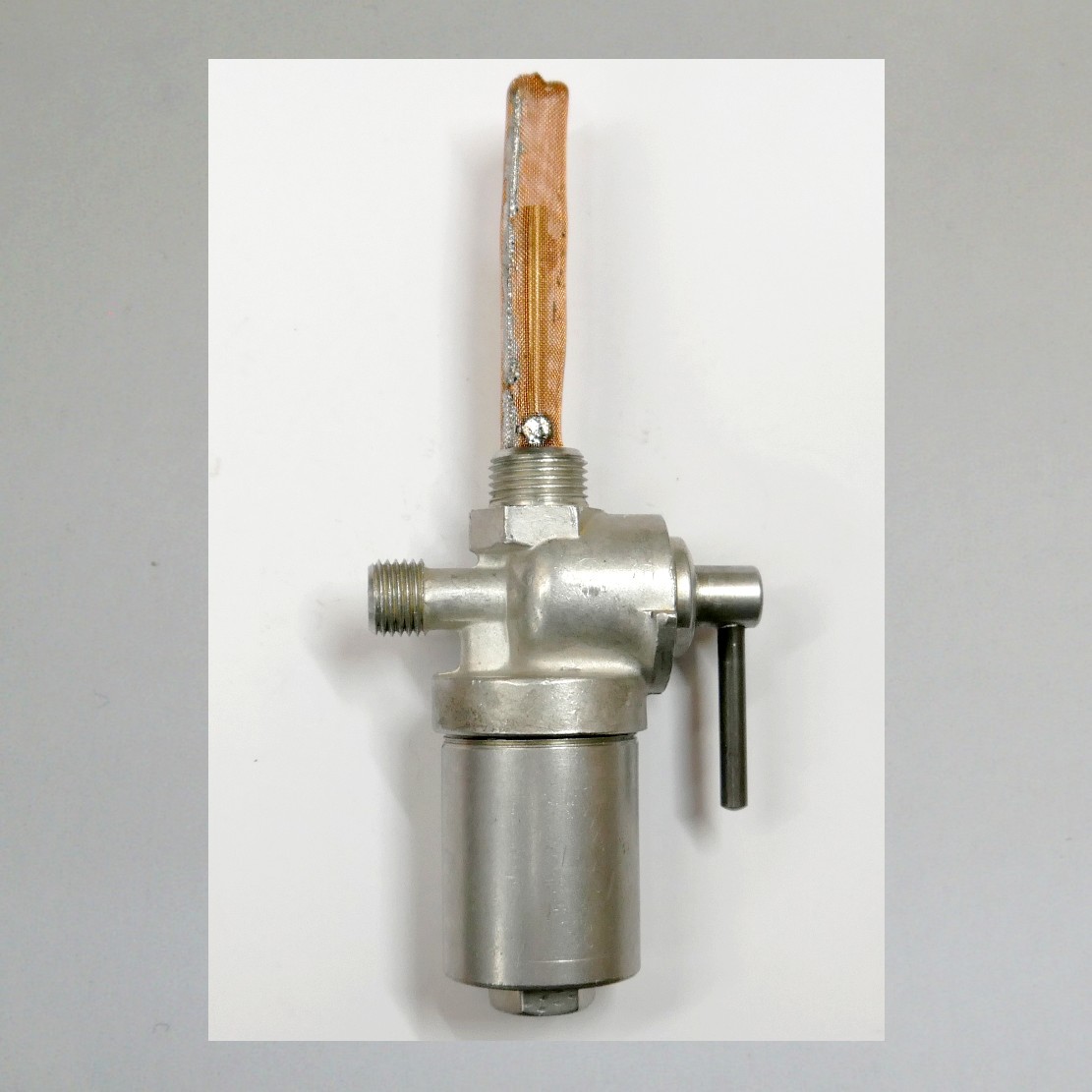 Grosser, fabrikneuer Benzinhahn mit Reserve und Zusatzfilter im Becher.