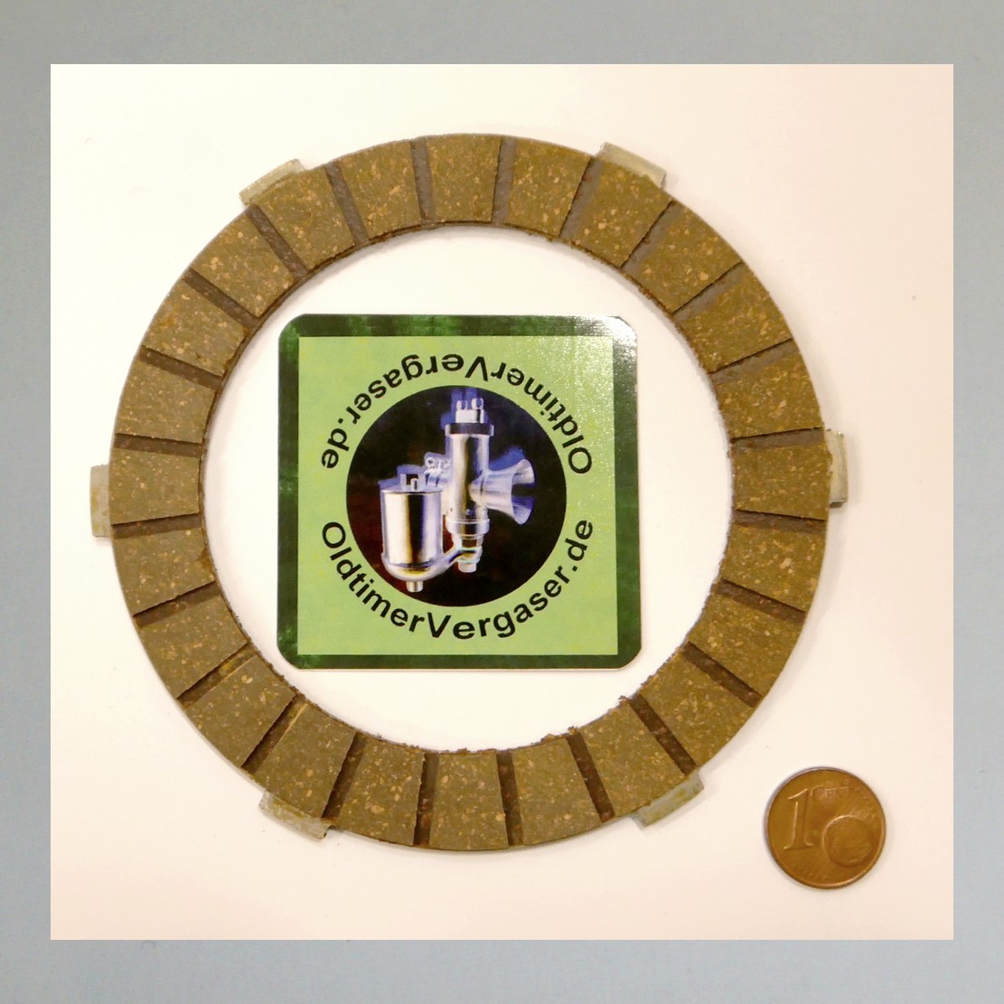 Stahlscheibe mit aufgeklebtem Reibbelag in sehr guter Qualität.