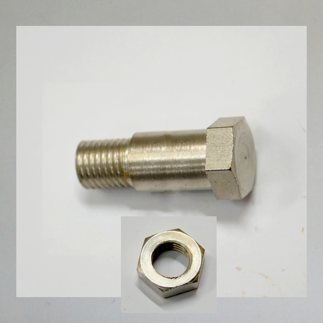 Lagerung Fussbrems-Pedal, Schraube und Mutter. Gewinde: M12x1,5 Gewindelänge: 15mm Schaftlänge: 17,5mm Schaftdurchmesser: 13,9 Schlüsselweite: SW17 Mutter Höhe: 6mm