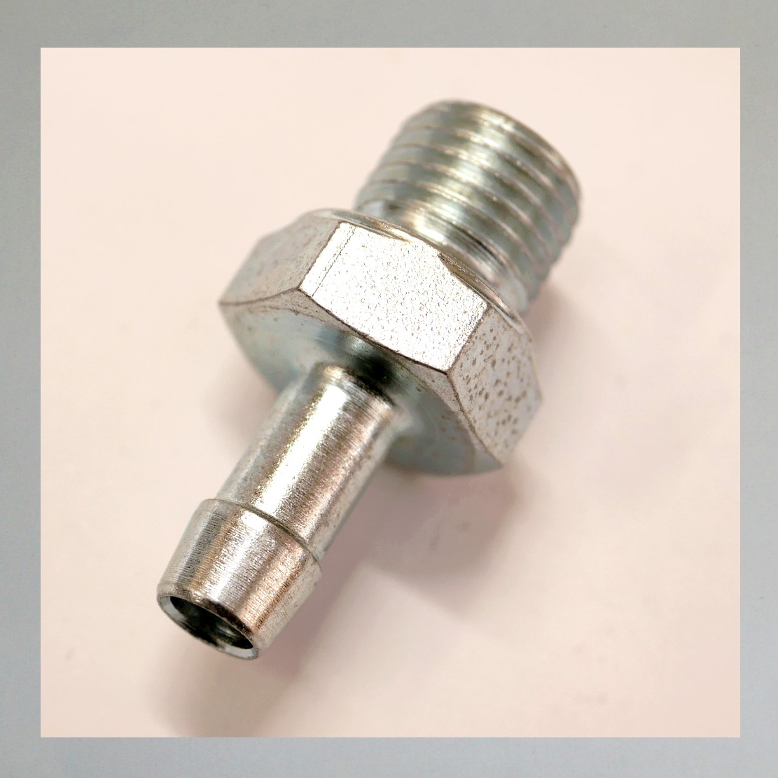 Gewinde-Schlauchtülle M14x1,5 Maße: Gewinde: M14x1,5 Tüllendurchmesser: Schaft 8mm und Wulst 9mm Tüllenlänge: 19mm SW 19 Länge ges: 39mm Material: Stahl zerzinkt Seltene Ausführung, kein Normteil Passende Dichtung bei uns: "FDR-14x18" oder "FDR-14x20"