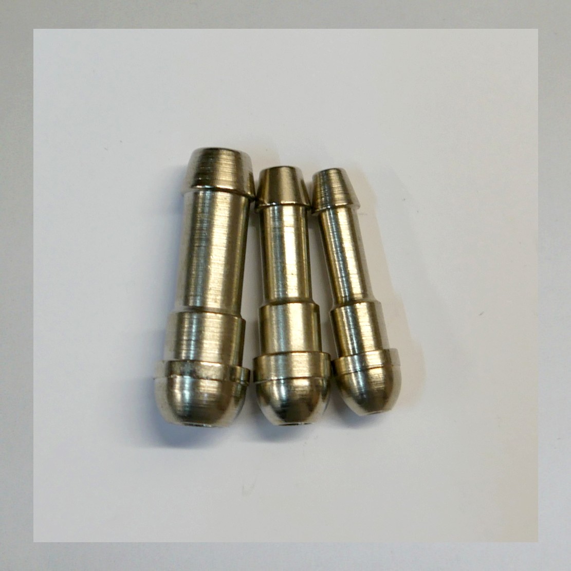 Rundkopf-Schlauchstutzen. Schlauchtülle mit Dichtkopf/ Kugelbuchse Maße: TD= Tüllendurchmesser: 6mm SD= Schaftdurchmesser: 6,5mm GD= Grösster Durchmesser: 9,5 SID= Schlauch-Innendurchmesser: 4-5mm. Material: Messing oder Stahl vernickelt Das Bauteil kann in der Ausführung abweichen, aber alle angegebenen Maße stimmen. Die Bohrung in der Überwurfmutter sollte ca 0,5mm grösser sein als der Schaftdurchmesser (eventuell etwas aufbohren).