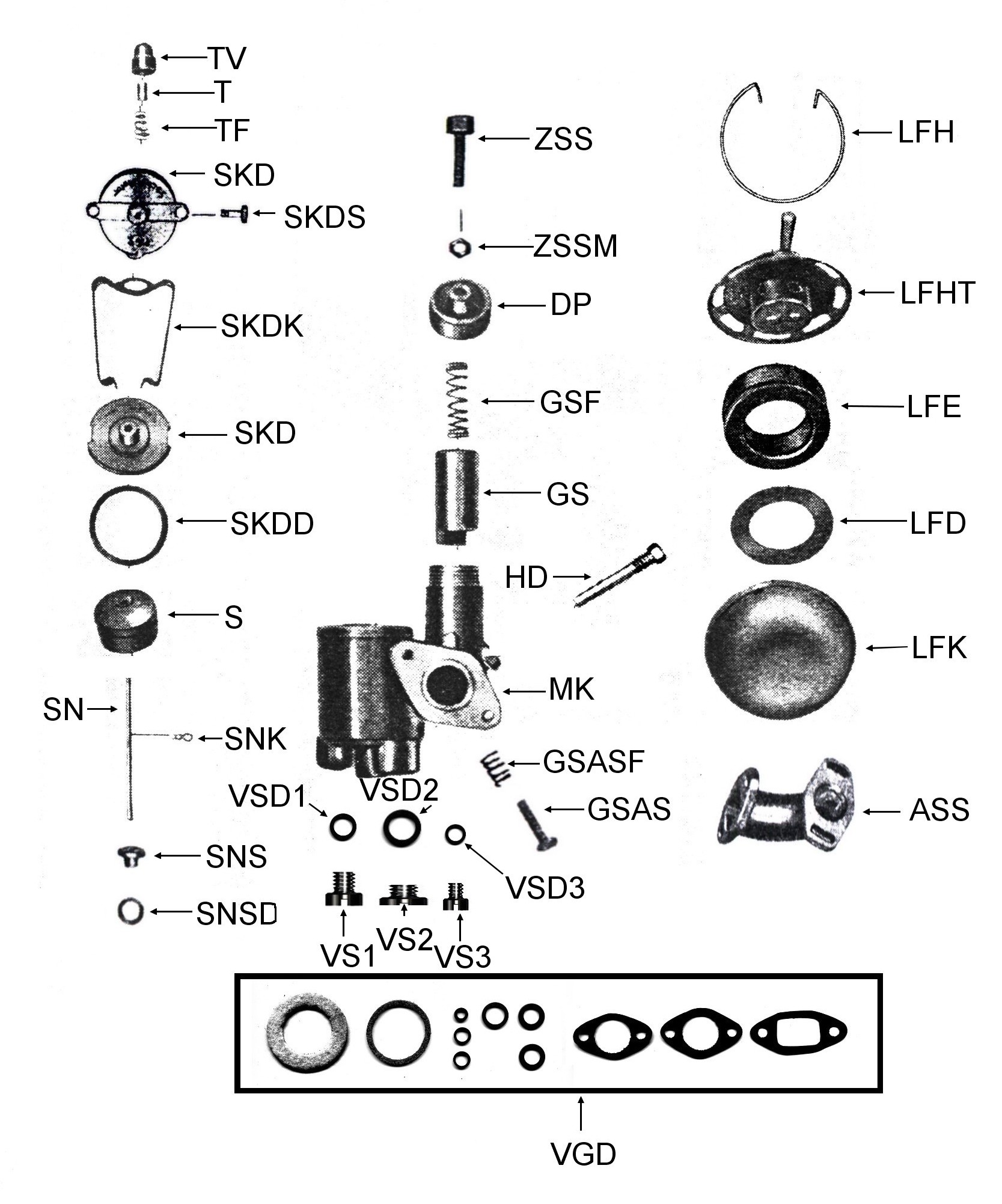 Die Sachs Vergaserteile aus Bakelite wurden vermutlich zur Metallersparnis ab ca 1940 hergestellt.