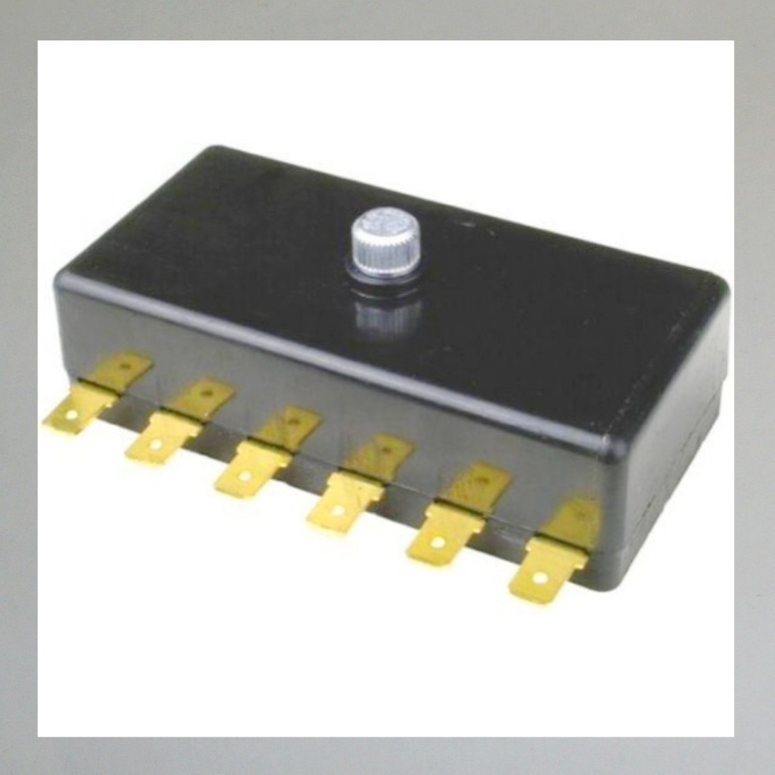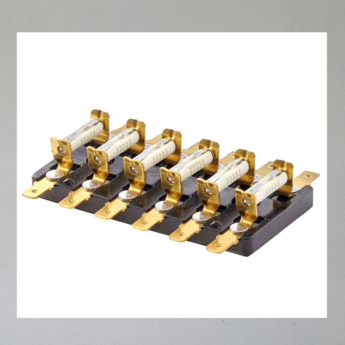 Sicherungsdose für 6 Sicherungen, Deckel schwarz, Steckkontakte (Flachamp/ KFZ-Stecker/ Flachsteckhülse)