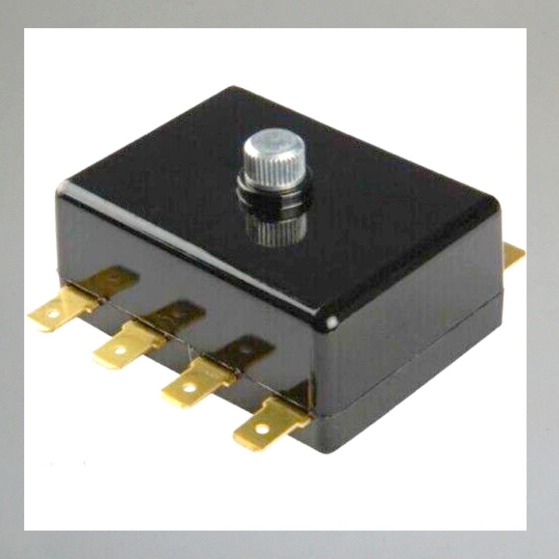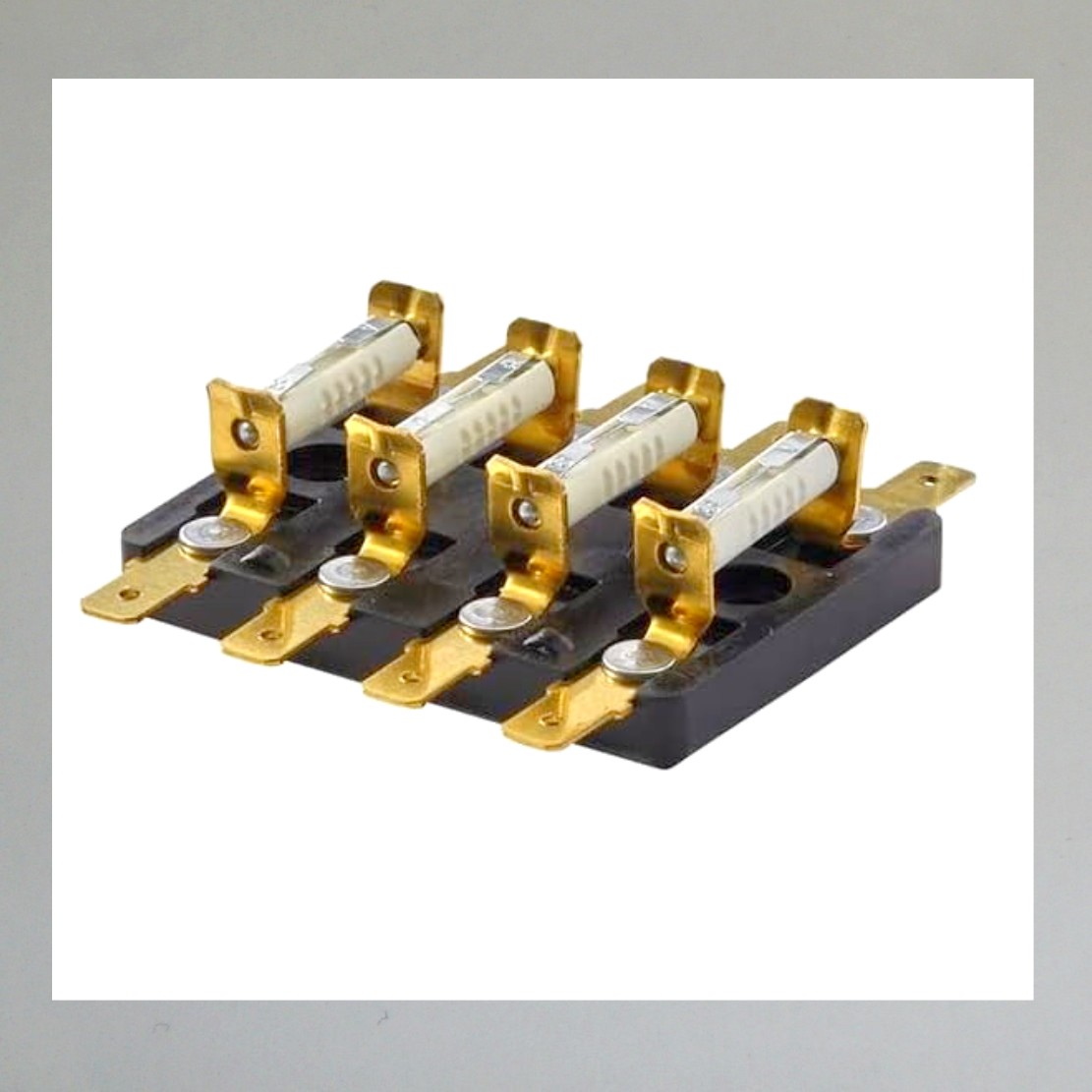 Sicherungsdose für 4 Sicherungen, Deckel schwarz, Steckkontakte (Flachamp/ KFZ-Stecker/ Flachsteckhülse)