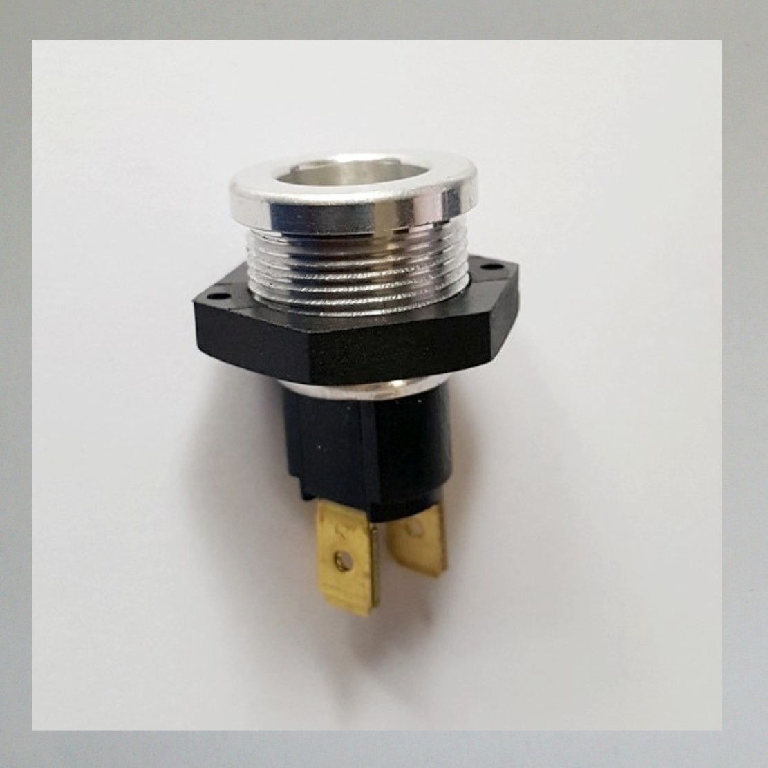 Masse/ Gewinde ist mit einer der Flachsteckhülsen verbunden.