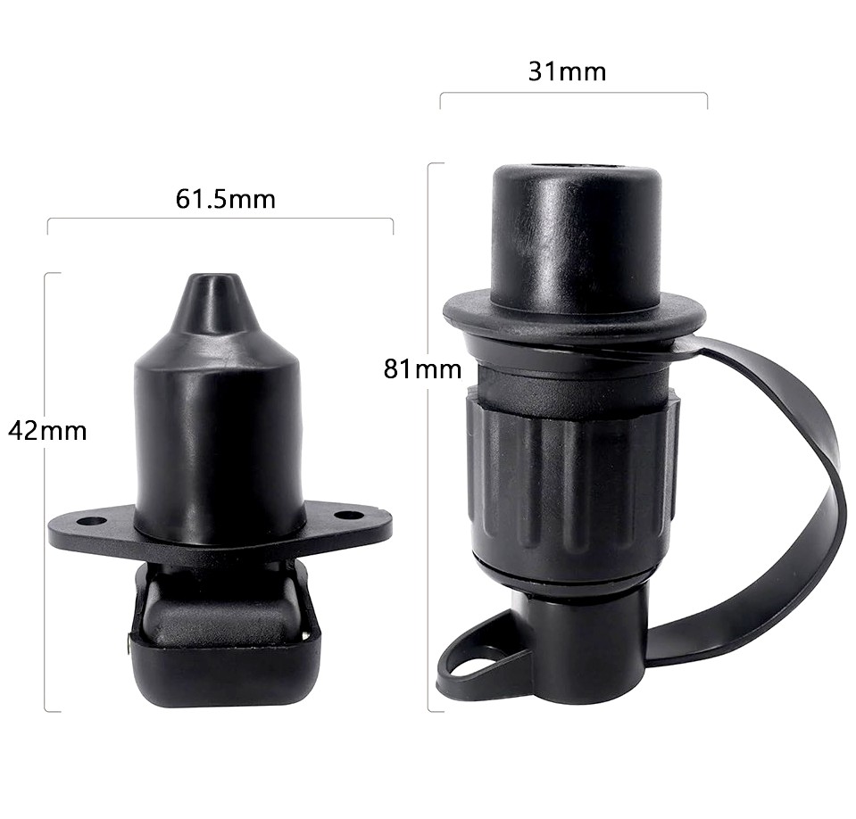 Beide Teile haben Gummikappen um den Kabeldurchgang dicht zu halten.