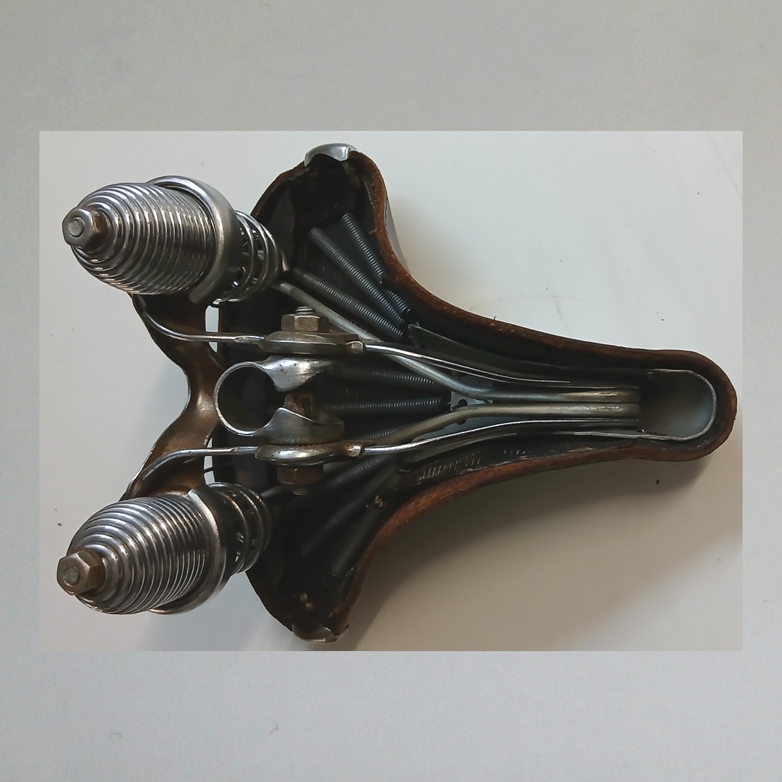 (wenig rostig, Abnutzung am Leder/keine Risse, Federn ok, keine Brüche)