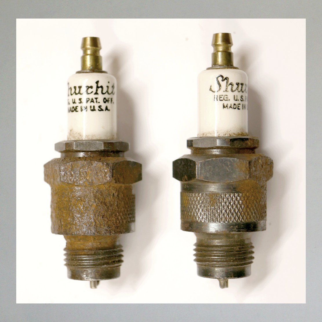 Zündkerze von SHURHIT (USA), 20er/ 30er Jahre, schöne Kerze und Karton, mit Rost/ Fehlern, Typ "SP-10"---Q4---
