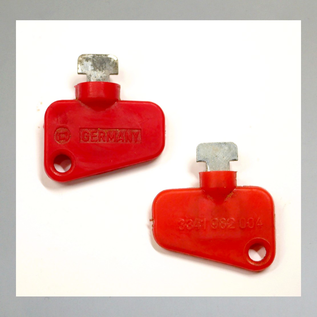Die 4 vorhandenen Schlüssel variieren leicht in Farbe und Dicke des Kunststoffes.
